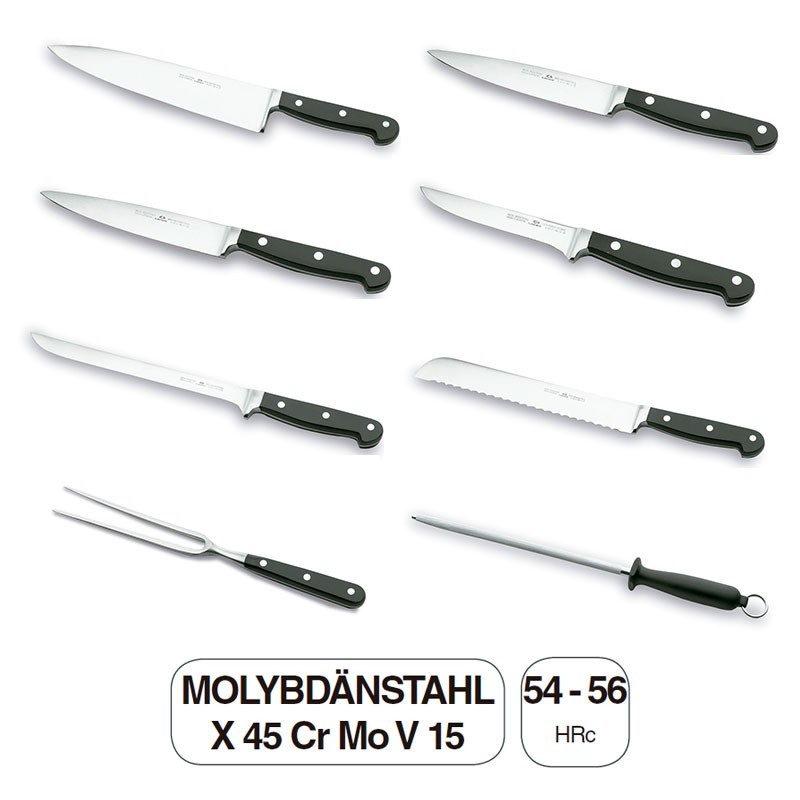 Tacoma couteaux de cuisine 8 pièces Classiques de la série avec une lame forgée Molybdänstahl X 45 Cr Mo V 15, la dureté 54-56 HRc.
