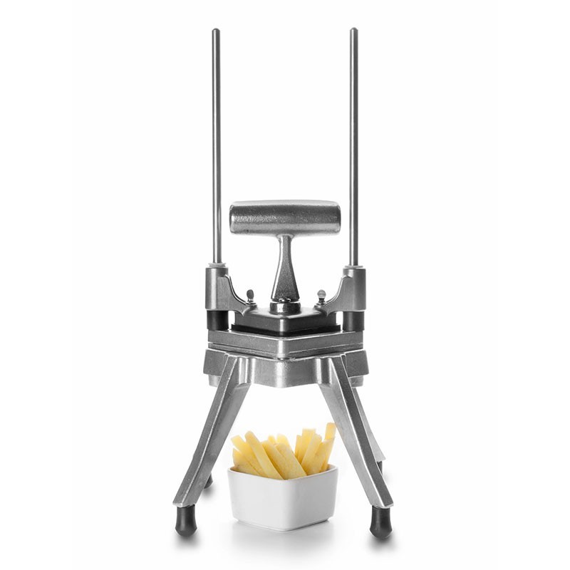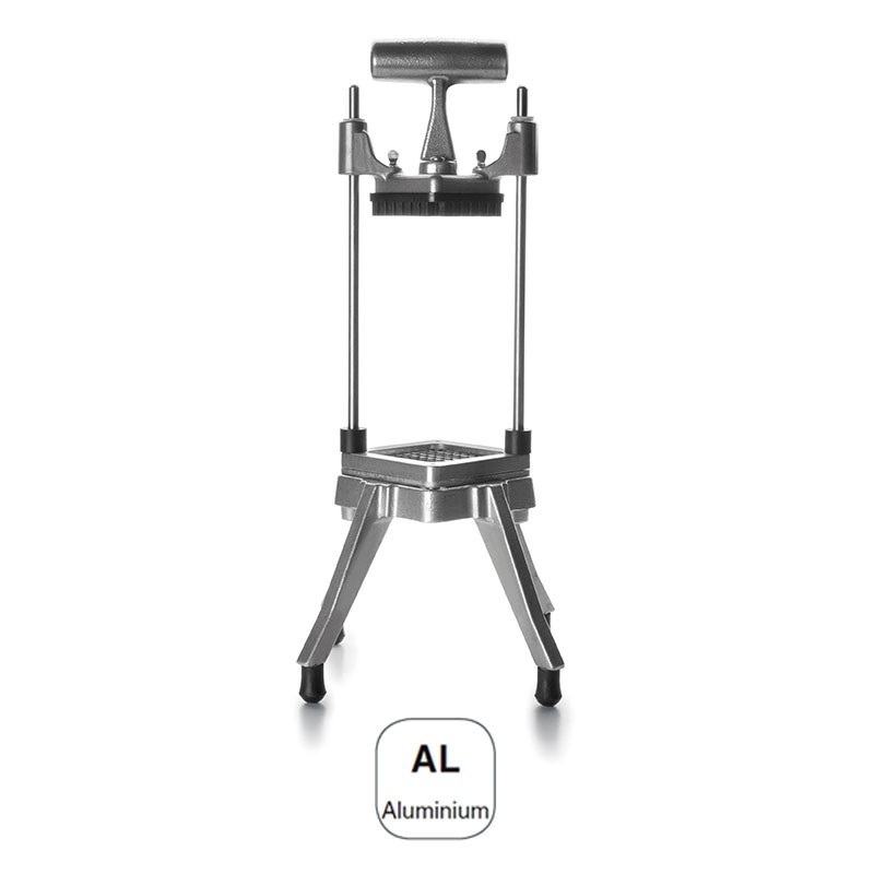 Machine à couper les pommes de terre à la verticale gamme professionnelle avec des lames pour couper des copeaux de 10x10 mm, et est fabriquée en aluminium d'excellente qualité et résistance à la corrosion.