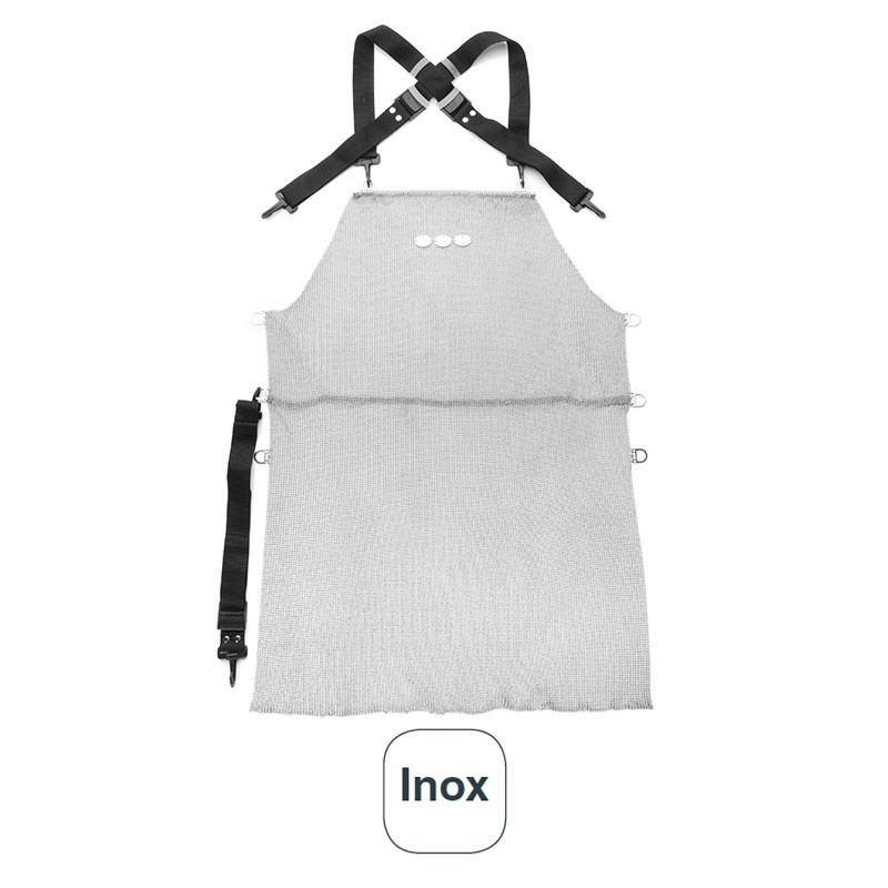 Tablier professionnel de la cotte de mailles anticorte de l'acier inoxydable avec des bretelles réglables pour la fixation de la verticale et de l'horizontale.