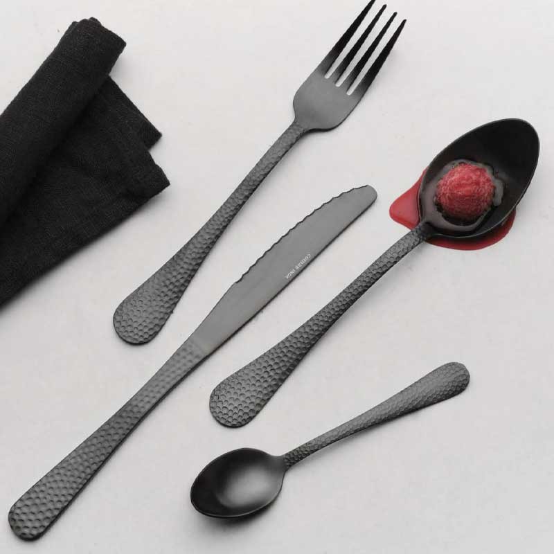 Ensemble de 24 couverts Comas Luna Black Inox en acier inoxydable 18% chrome, sans nickel et de 1,8 mm d'épaisseur.