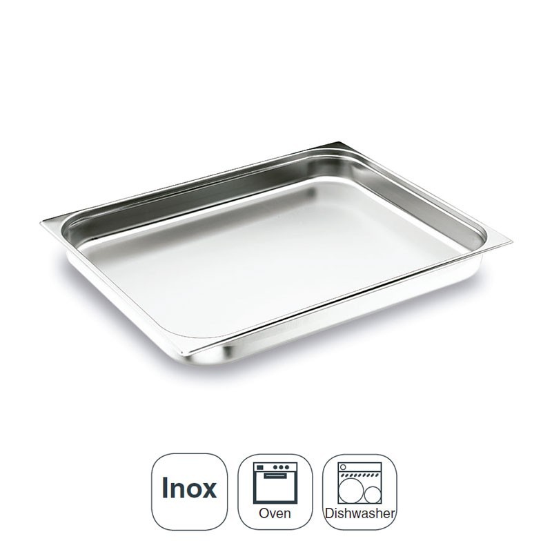 Un seau ou un bac de taille GN 2/1 de 530x650 mm pour les cuisines professionnelles, en acier inoxydable de la Série Aisi 200.