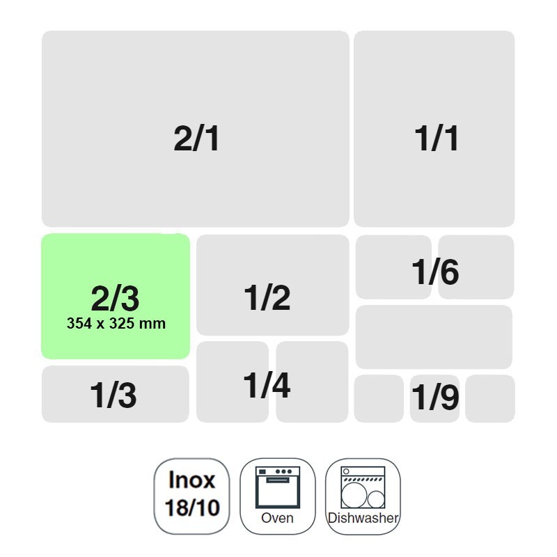 Un seau ou un bac de taille GN 2/3 354x325 mm pour les cuisines professionnelles en inox 18/10.