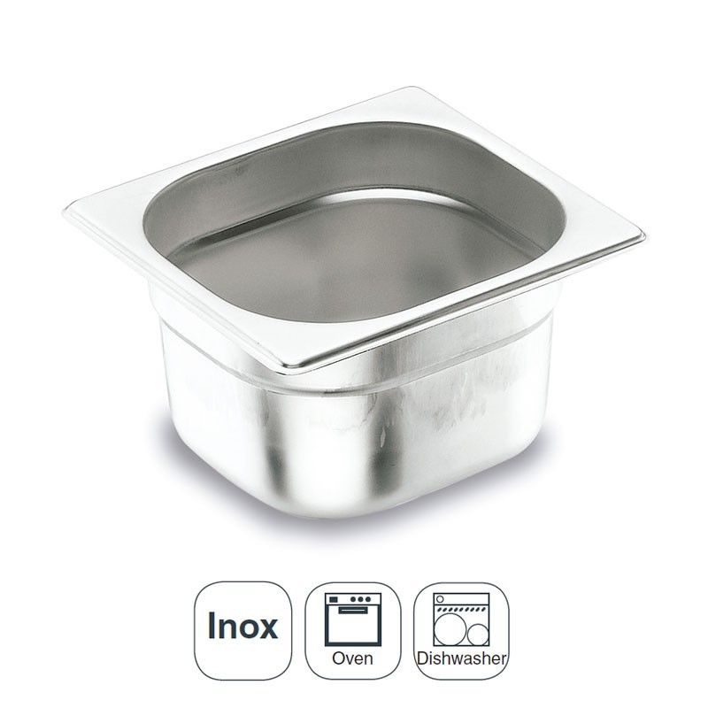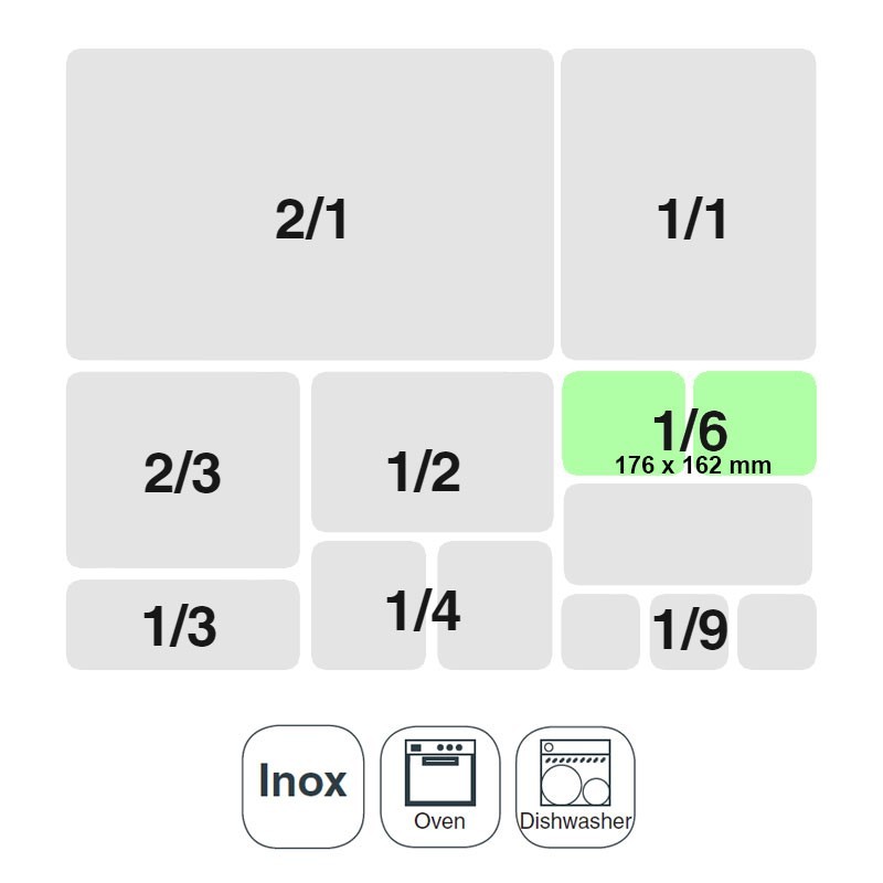 La taille de la gouttière GN 1/6 de 176x162 mm pour les cuisines professionnelles, en acier inoxydable de la Série Aisi 200.
