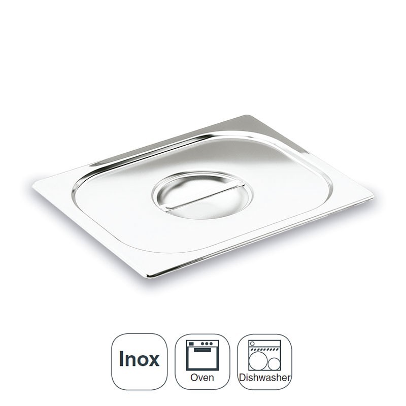 Couvercle pour les conteneurs et bacs Gastronorm pour les cuisines professionnelles, en acier inoxydable de la Série Aisi 200. Disponible en différentes tailles.