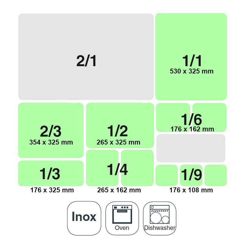Ces conteneurs peuvent être de plusieurs tailles standard, jusqu'à un total de 9 tailles différentes et de construction, peut varier en fonction de l'usage auquel ils sont destinés, parmi lesquels vous pouvez trouver de l'acier inoxydable, polycarbonate, polypropylène, mélamine et même de porcelaine.