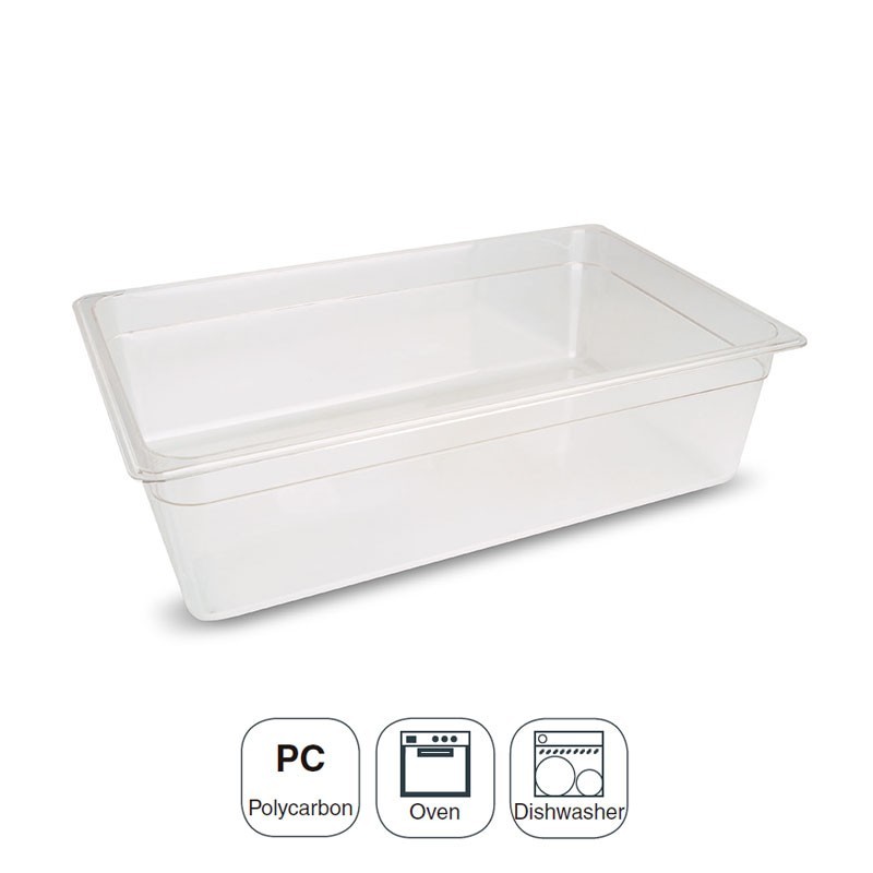 Bac de taille GN 1/1 530x325 mm pour les cuisines professionnelles de haute qualité en polycarbonate léger et non déformable.