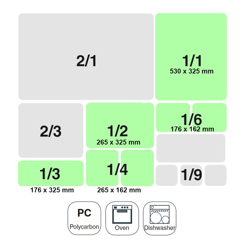 Ces conteneurs peuvent être de plusieurs tailles standard, jusqu'à un total de 9 tailles différentes et de construction, peut varier en fonction de l'usage auquel ils sont destinés, parmi lesquels vous pouvez trouver de l'acier inoxydable, polycarbonate, polypropylène, mélamine et même de porcelaine.