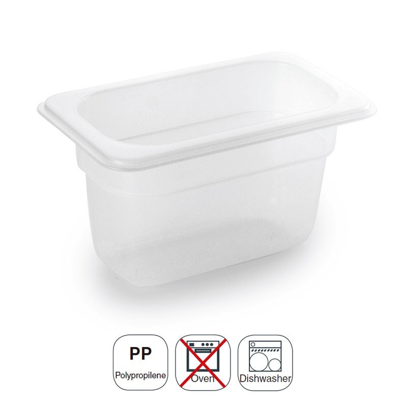 La taille de la gouttière GN 1/9 de 176x108 mm pour les cuisines professionnelles fabriqués en polypropylène de haute qualité indéformable et léger.