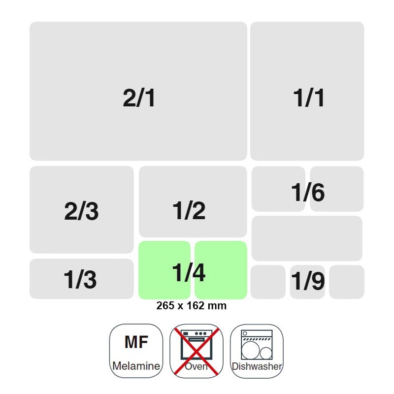 La taille de la gouttière GN 1/4 265x162 mm pour les cuisines professionnelles fabriqués en résine de synthèse blanc de haute qualité et résistance.