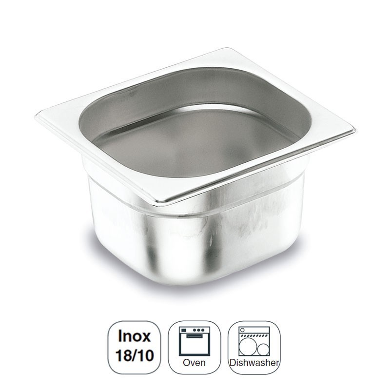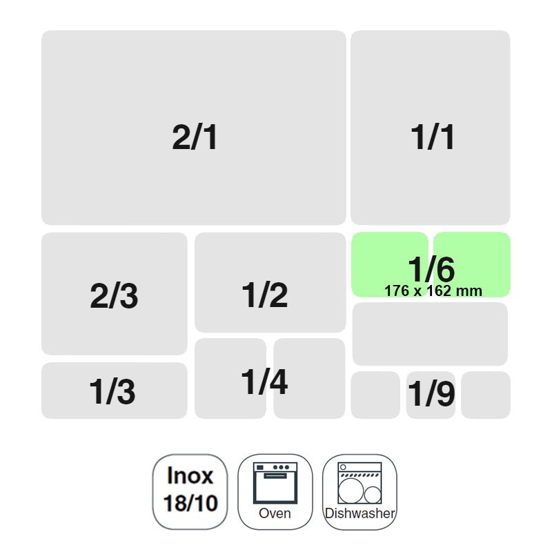 La taille de la gouttière GN 1/6 de 176x162 mm pour les cuisines professionnelles en inox 18/10.