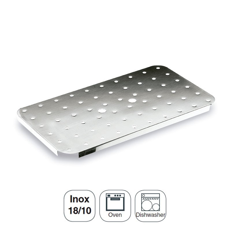 Double fond perforé pour les conteneurs et bacs Gastronorm pour les cuisines professionnelles, et fabriqués en acier inoxydable 18/10. Plusieurs mesures.