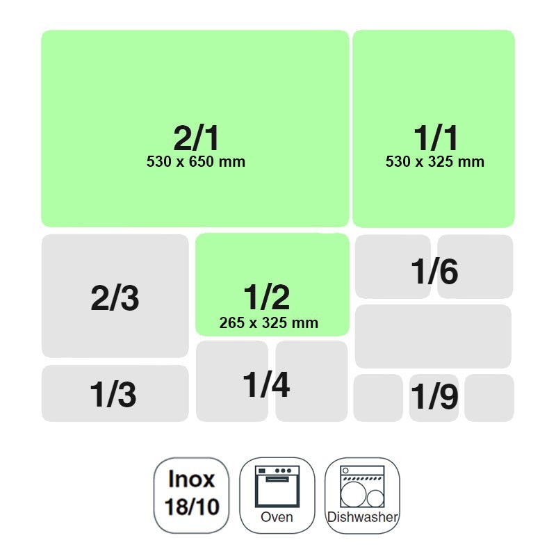 Ces conteneurs peuvent être de plusieurs tailles standard, jusqu'à un total de 9 tailles différentes et de construction, peut varier en fonction de l'usage auquel ils sont destinés, parmi lesquels vous pouvez trouver de l'acier inoxydable, polycarbonate, polypropylène, mélamine et même de porcelaine.