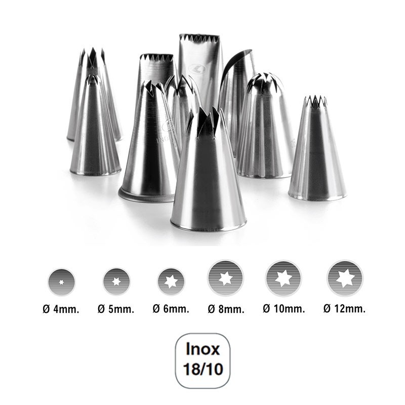 Ensemble de 6 buses pour la pâtisserie à la poche à pâtisserie avec une forme d'étoile et en acier inoxydable 18/10 de haute qualité et résistance à la corrosion. Mesures: 4/5/6/8/10/12 mm
