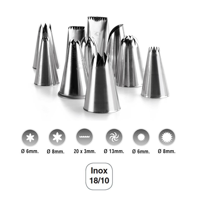 Ensemble de 6 buses pour la pâtisserie à la poche à douille avec 4 formes différentes et en acier inoxydable 18/10 de haute qualité et résistance à la corrosion.