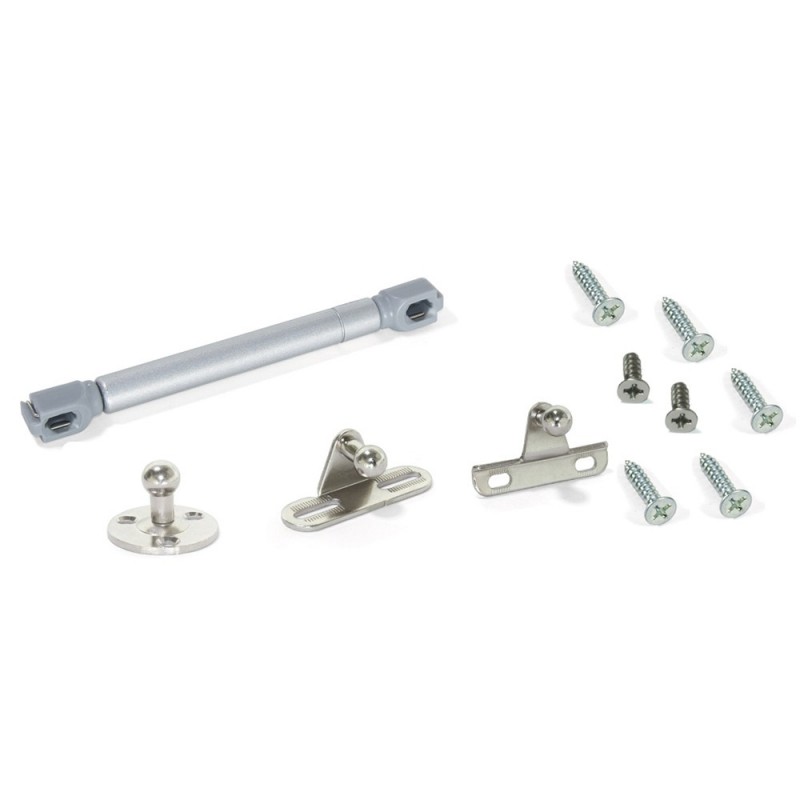 Vérins pour meubles qui permettent l'ouverture des portes en bois ou avec un cadre en aluminium. Fournissent une descente amortie de la porte abattante dans les meubles de cuisine, maison et salle de bain. Ces vérins amortisseurs sont fournis individuellement emballés avec les instructions de montage. Chaque sachet contient un vérin, un crochet pour le côté, un crochet pour une porte en bois, un crochet pour une porte avec cadre en aluminium et les vis nécessaires.