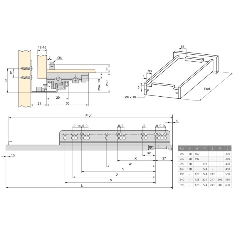 Guides caché roues pour tiroir Slippe ont une haute qualité et un fonctionnement optimal dans des meubles. Ces guides fournissent une extraction totale des tiroirs.