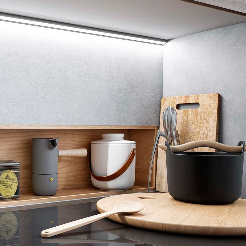 La réglette Mycorner Black possède les mêmes caractéristiques que la réglette Geo Corner, mais avec une finition en noir qui la rend beaucoup plus élégante et moderne. Construite sur un profil en aluminium, sa puissance de 11,5W/m est suffisante pour éclairer un plan de travail de cuisine. Cependant, si vous recherchez une plus grande puissance et performance, nous présentons cette variante qui ne laissera personne indifférent. Possibilité de demander les réglettes avec le même interrupteur à LED bleue, mais qui au lieu d'être simplement On/Off soit aussi un variateur d'intensité.