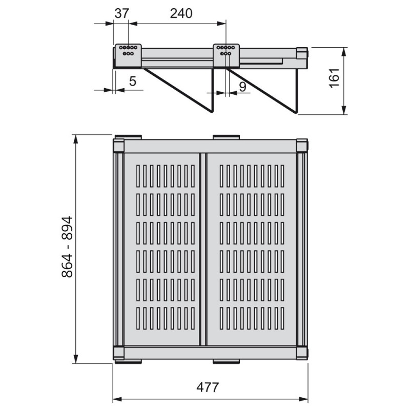 Tiroir de meuble à chaussures et crémaillère à vis des guides d'extraction totale et fermeture en douceur, en plus d'un système de écrêtés automatique et rapide pour l'installation de la crémaillère. Il est réglable pour s'adapter à l'intérieur creux de l'enceinte et sont en aluminium peint en couleur moka.