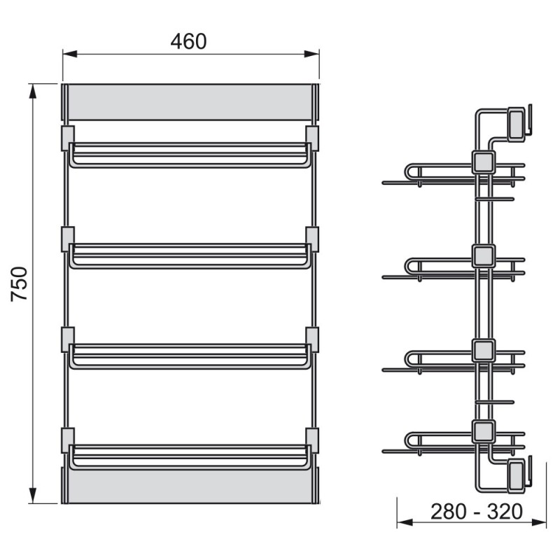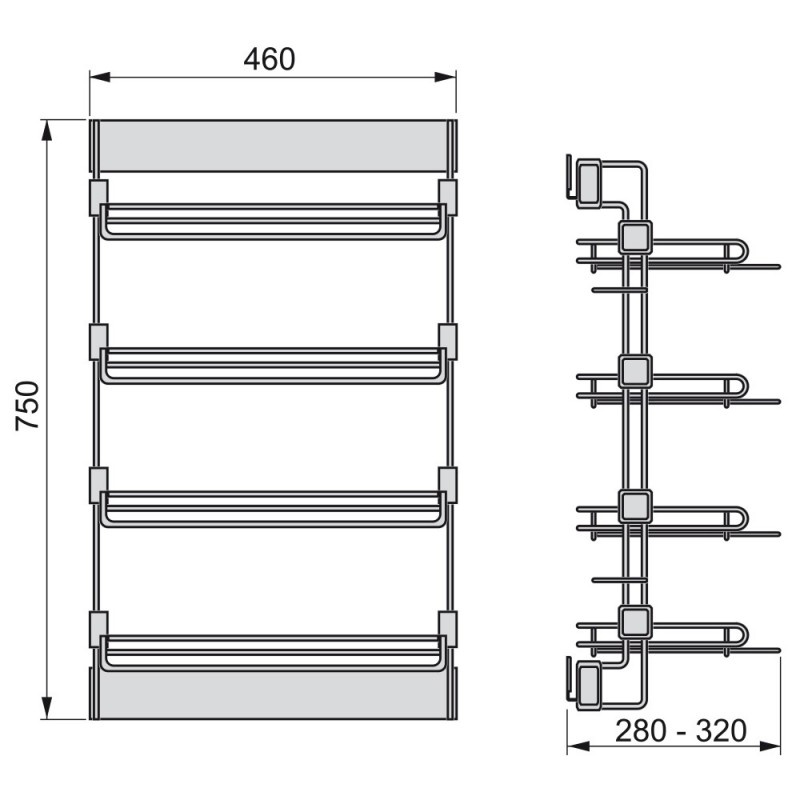 Le cordonnier latérales amovibles Moka vous permet d'organiser efficacement l'espace à l'intérieur des placards et penderie de plain-pied, offrant un accès pour les vêtements. Il est fait d'acier avec une finition peinte en marron, moka, et en plastique, et les guides sont également de fermeture en douceur.