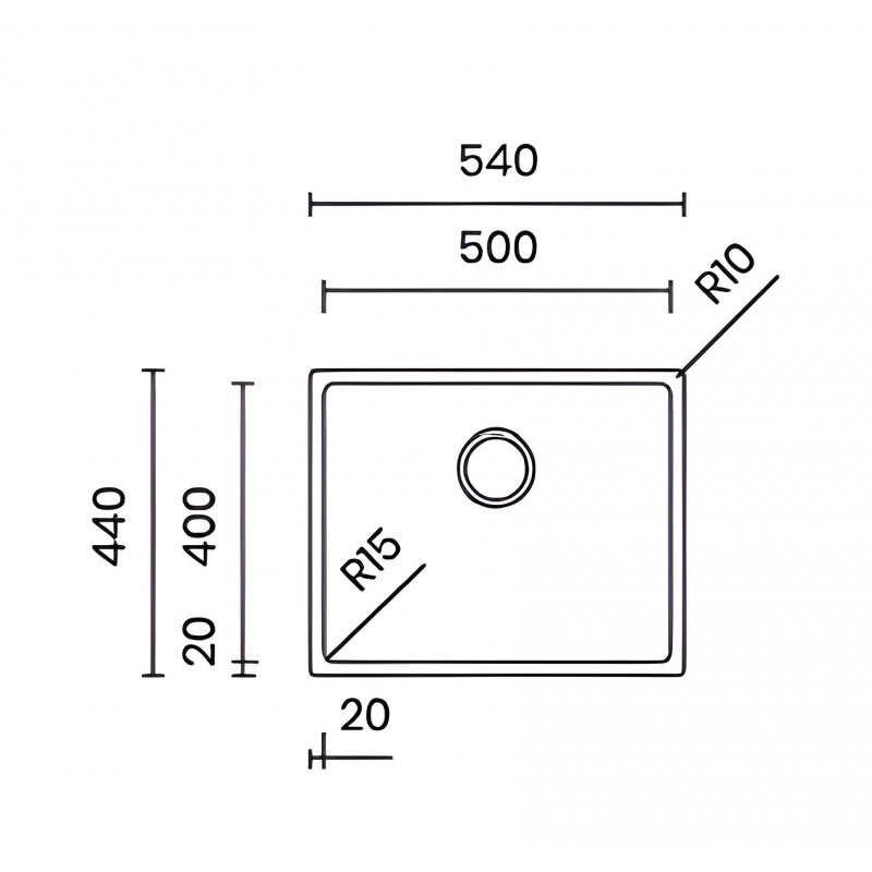 Évier en acier inoxydable modèle Ferrara Plus de 540 x 440 mm pour installation sous plan, avec option d’installation affleurante ou filotop.