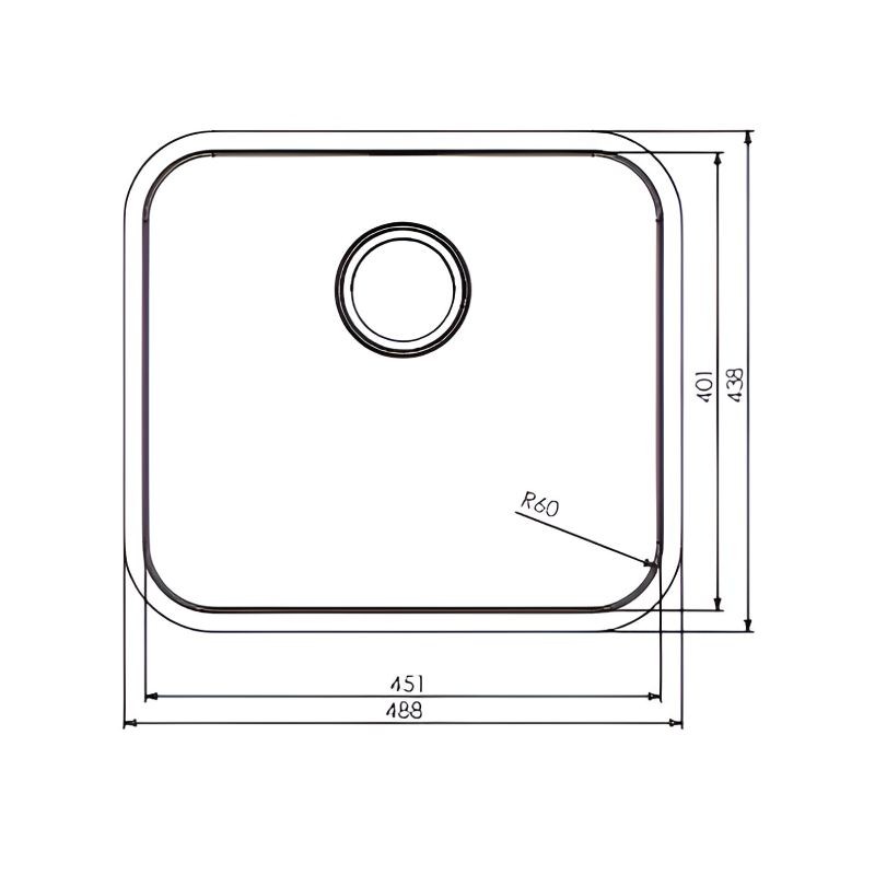 Évier en acier inoxydable modèle de Ferrare 488 x 438 mm pour l'installation sous plan de travail.
