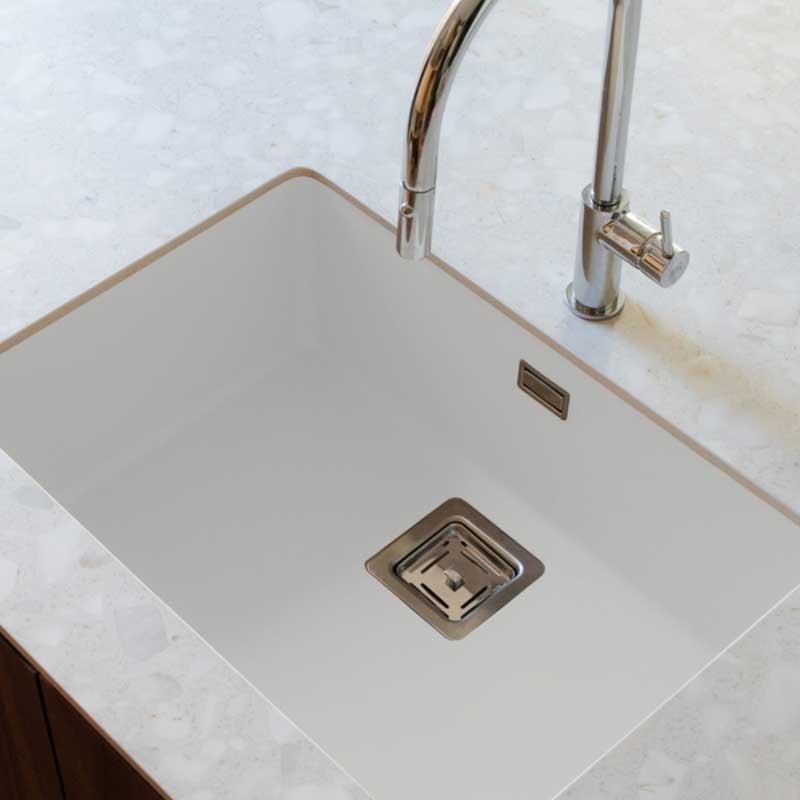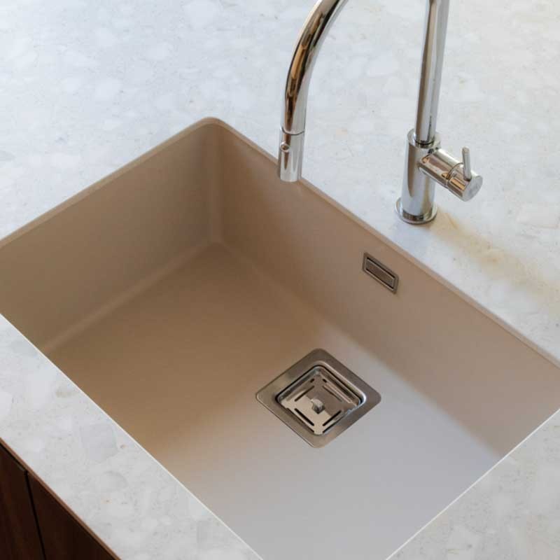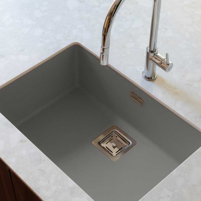 Évier en granit Hekla® modèle Zie 60 finition mate conçu pour une installation sous le plan de travail ou sur le plan de travail dans des meubles d'au moins 70 cm.