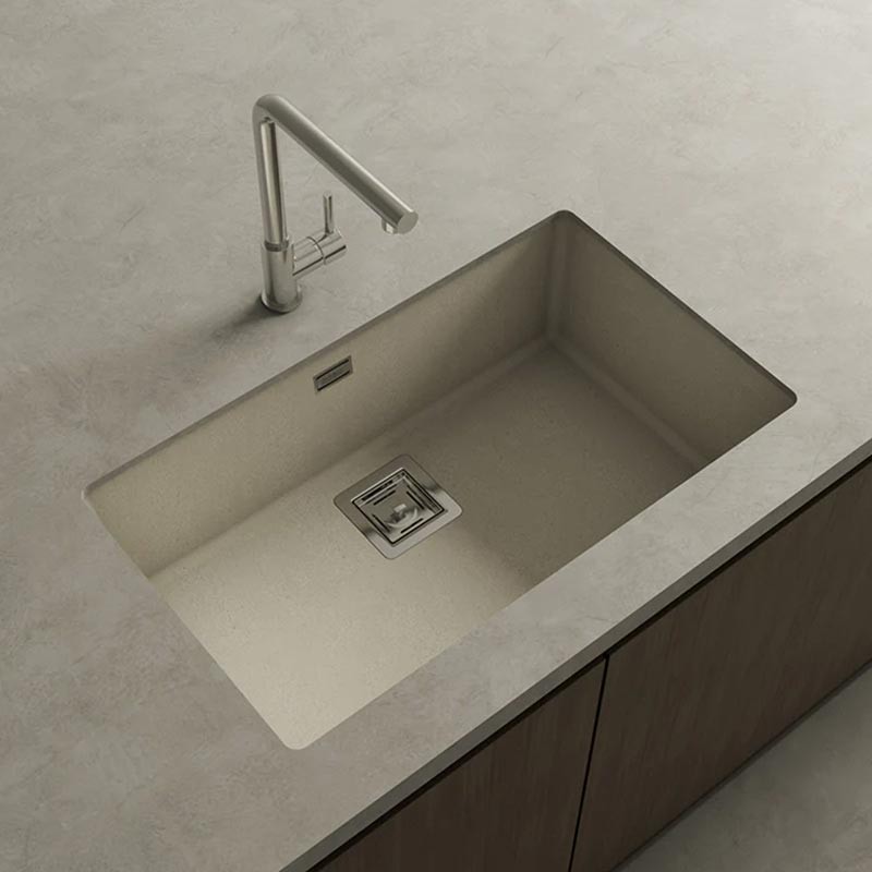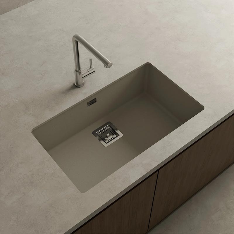 Évier en granit Hekla® modèle Zie 70 finition mate conçu pour une installation sous plan de travail ou sur plan de travail dans des meubles de 80 cm minimum.