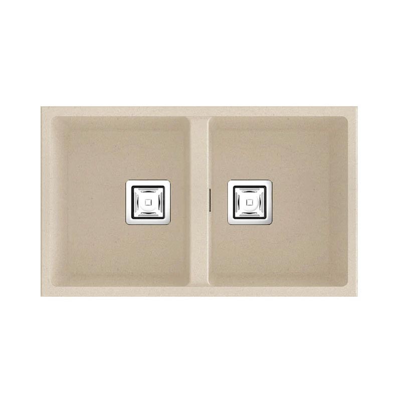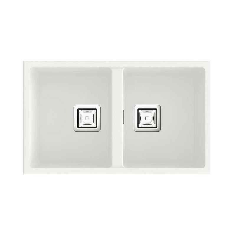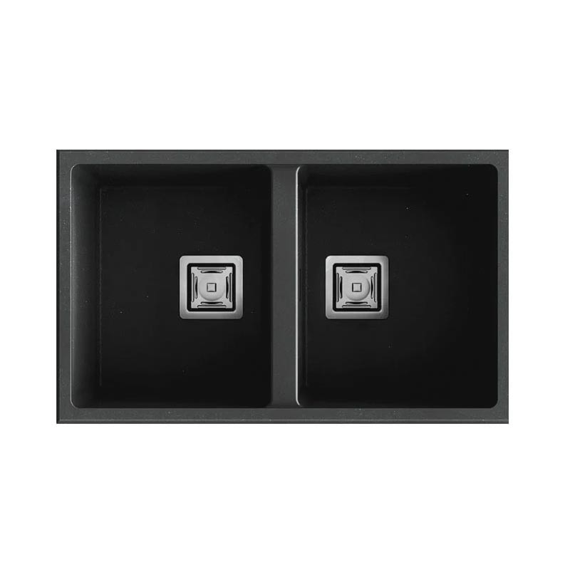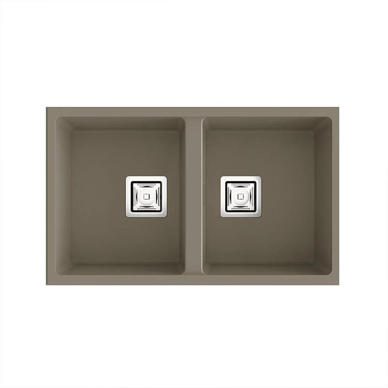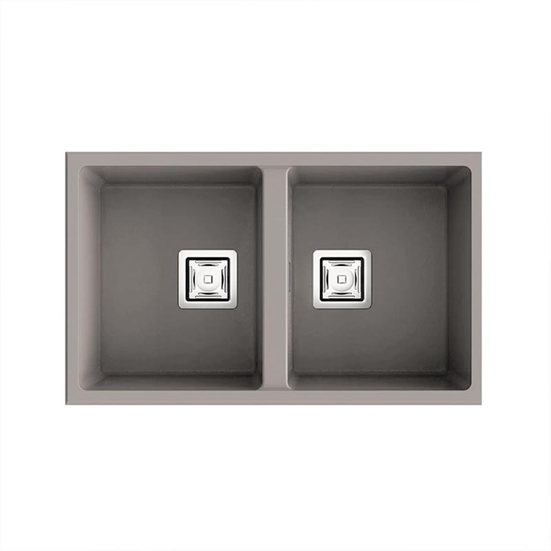 Évier en granit Hekla® modèle Zie 70 à deux bacs finition mate conçu pour une installation sous plan ou sur plan dans des meubles de 80 cm minimum.