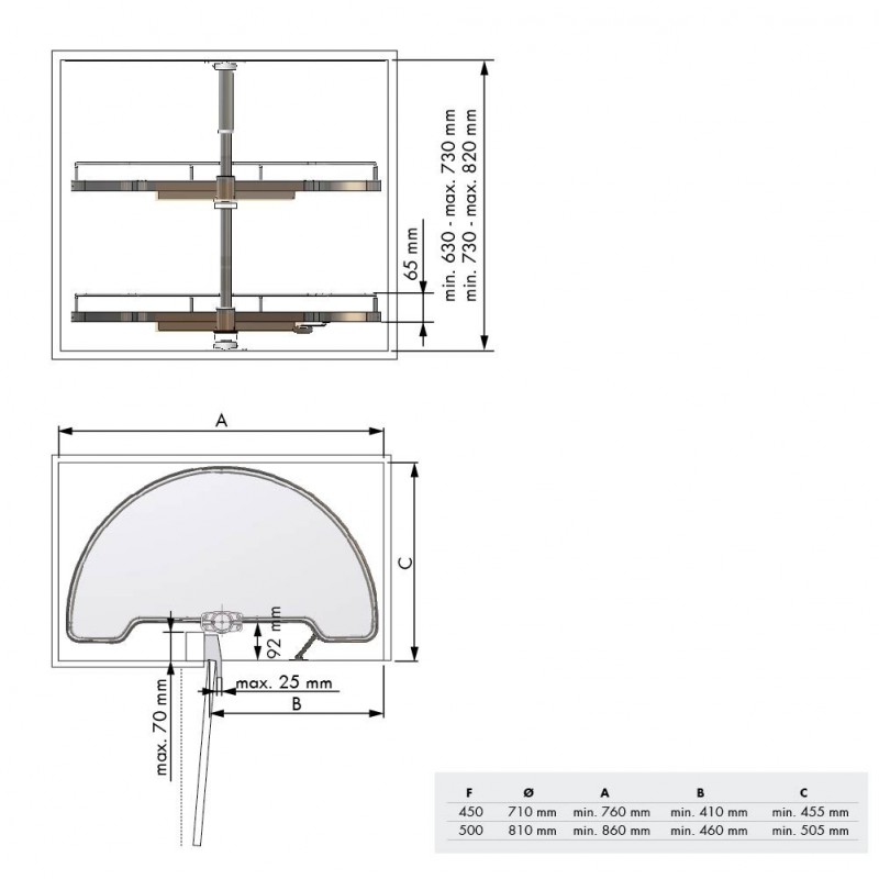 Extractible semi-circulaire Compact pour meuble d'angle de cuisine avec double plateau avec bases en mélamine anthracite pour une charge dynamique de 20 kg par plateau.