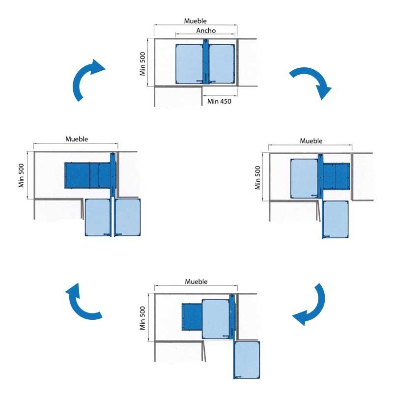 Module amovible 4-bac, la Magie de meuble d'Angle coin aveugle cuisine de 800 mm de largeur minimale et la porte de 450 mm Plateaux avec une base en bois ou d'une lame à choisir.