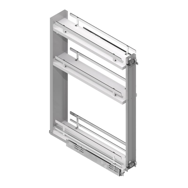 Module amovible en 3 hauteurs pour des meubles de cuisine pour le stockage des bouteilles, des canettes ou des produits similaires. Le kit comprend des éléments intercalaires pour empêcher les bouteilles de frapper les uns les autres.