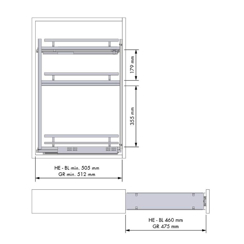 | 200 | Blum (Bl) | 162-168D x 679H x 493L |