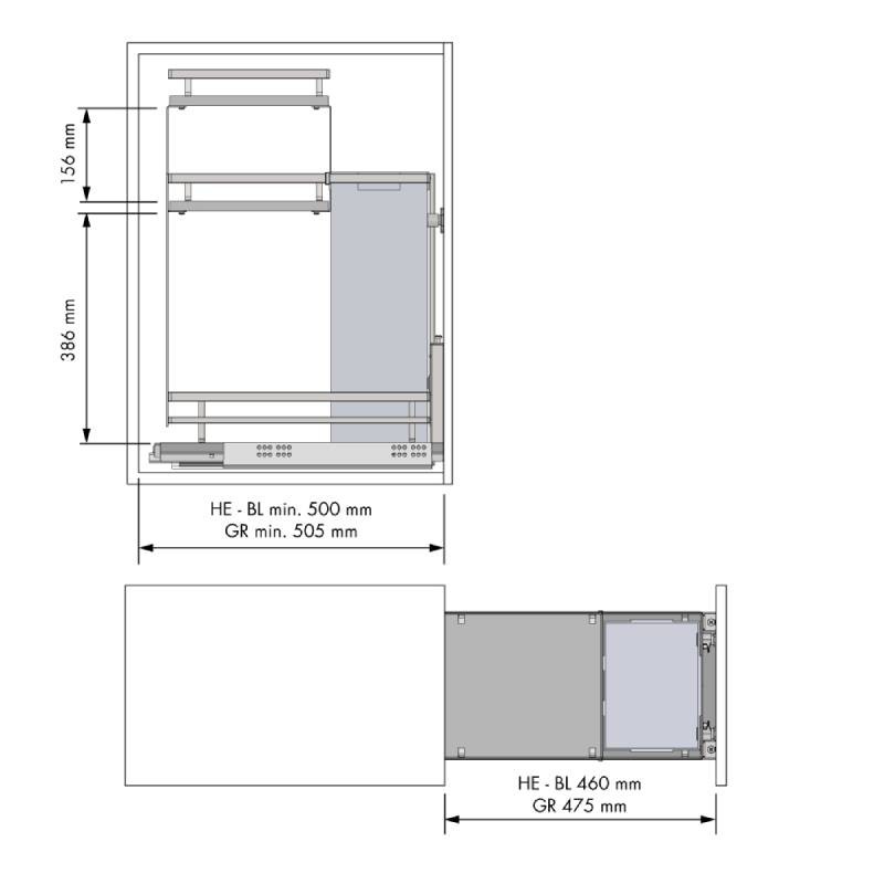 | 400 | Blum (Bl) | 362-368D x 667H x 493L |
