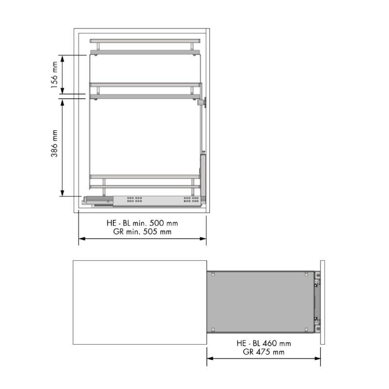 | 400 | Blum (Bl) | 362-368D x 667H x 493L |