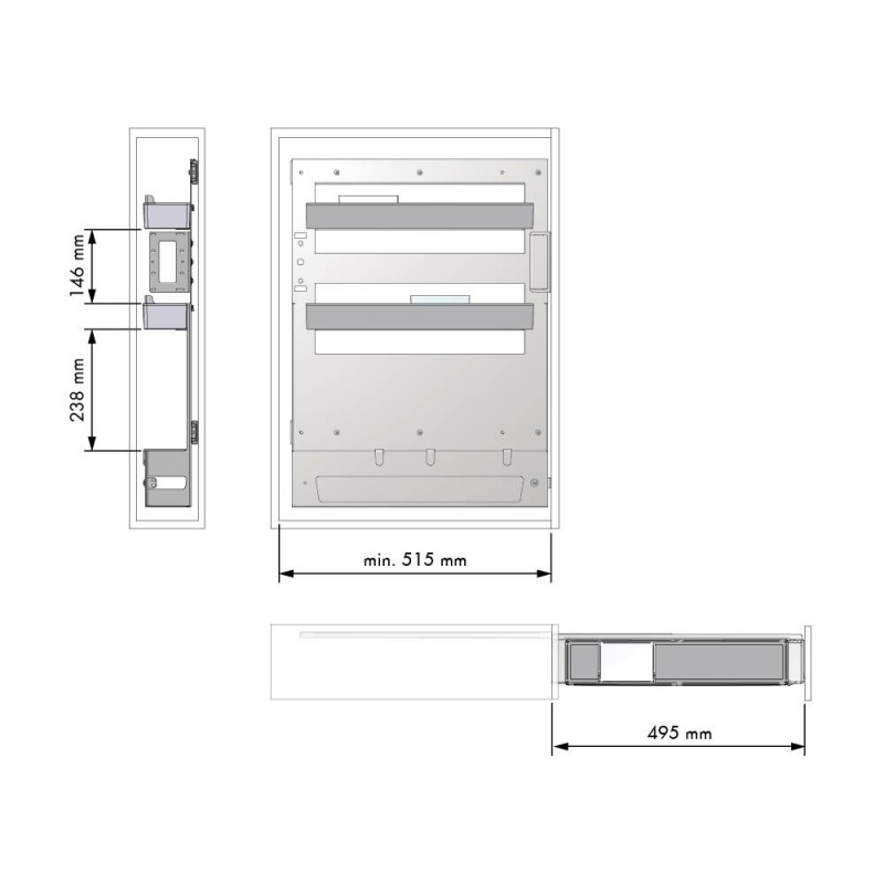 Casier à bouteilles Nova Flat en acier finition anthracite, 3 étagères avec plateaux amovibles en ABS, glissières latérales cachées, extraction totale et fermeture amortie.