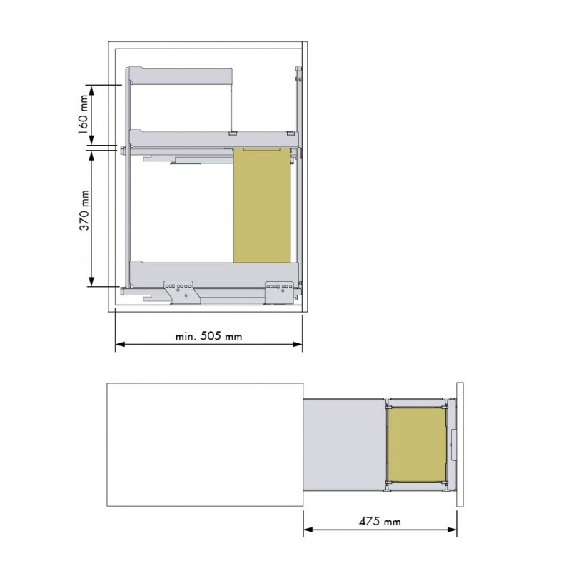 Module extractible pour meuble de cuisine pour le rangement de bouteilles, bocaux, épices et petits récipients. Inclut également un sac en tissu pour ranger le pain.