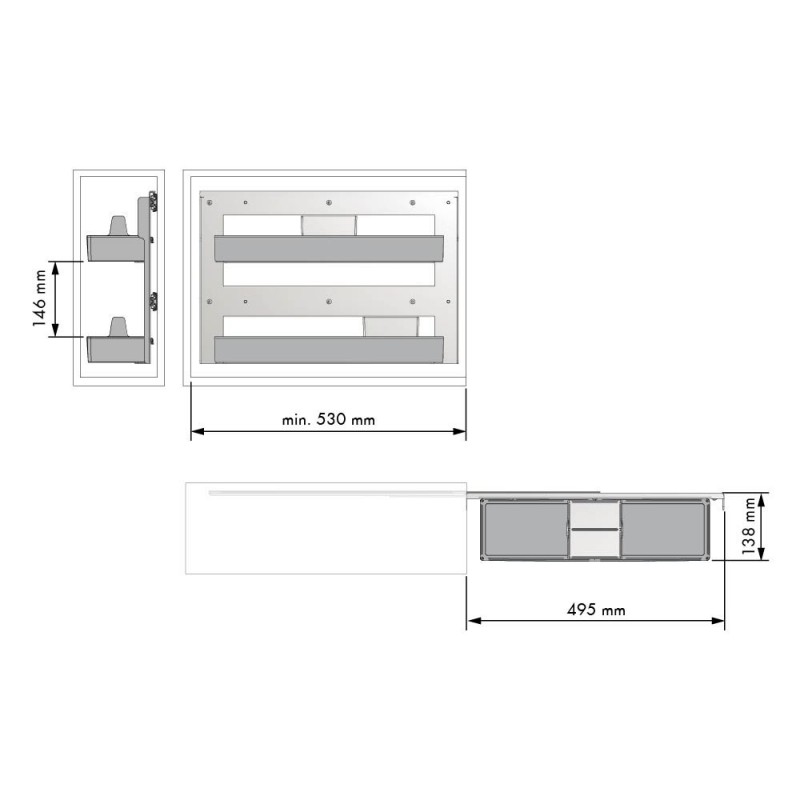 Accessoire de garde-manger Nova Flat en acier finition anthracite et ABS, 2 étagères avec plateaux amovibles, guides latéraux cachés, extraction totale et fermeture amortie.