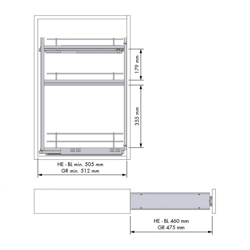 | 250 | Blum (Bl) | 212-218L x 677H x 493P |