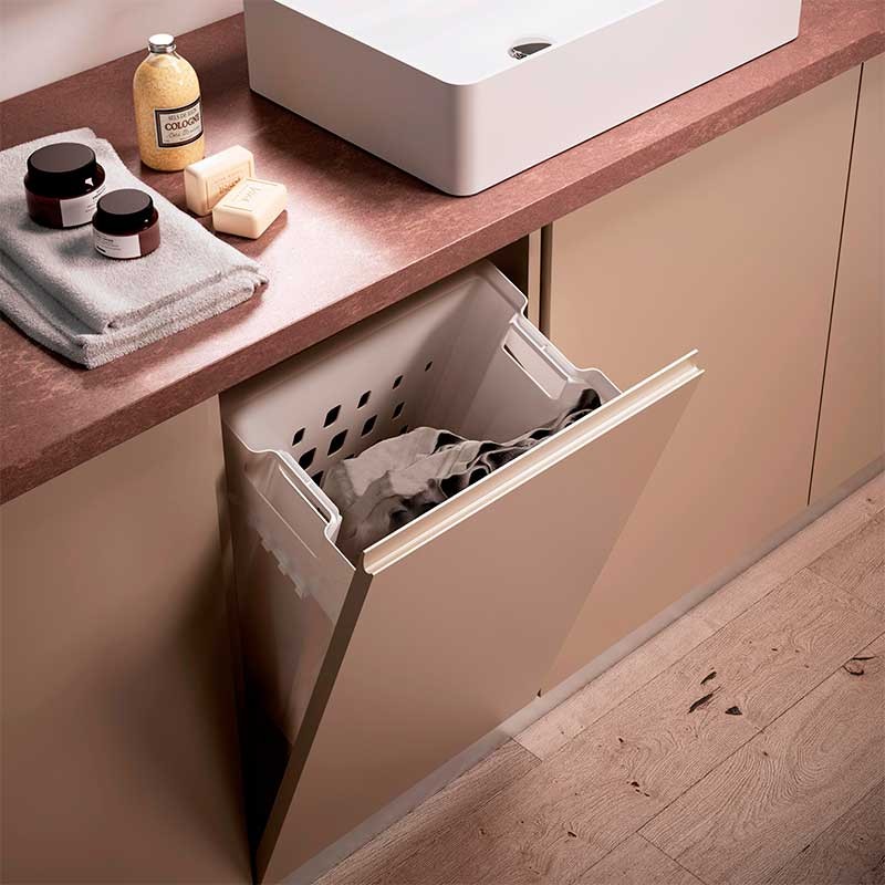 Panier inclinable pour organiser les vêtements sales. Ce panier à linge est dimensionné pour un module de 450 mm.