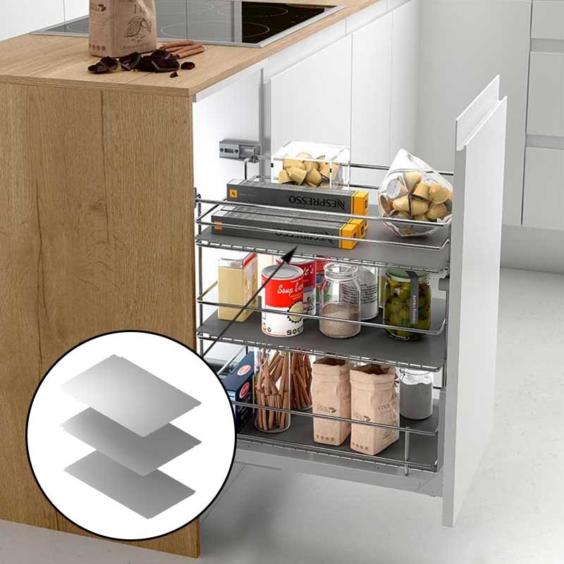 Matériel module amovible marchand de légumes, de 3 étages. Fini en acier chromé. Les Guides de l'extraction totale avec frein. Plusieurs mesures sont disponibles.