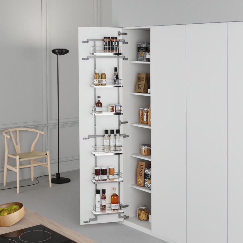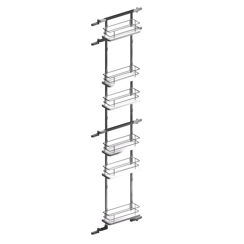 Étagère de garde-manger Compact pour meuble de cuisine type colonne, fabriquée en acier finition chromée et paniers avec bases en mélamine.