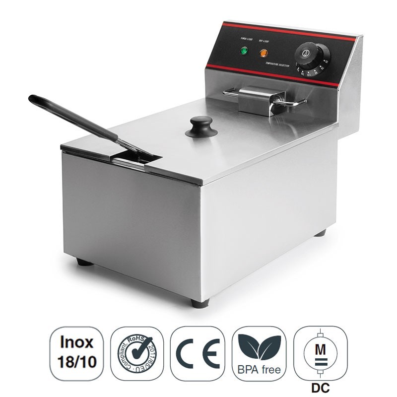 Friteuse électrique professionnelle de 6 L, et 2500 W, en acier inoxydable 18/10 de haute qualité et une excellente résistance à la corrosion.