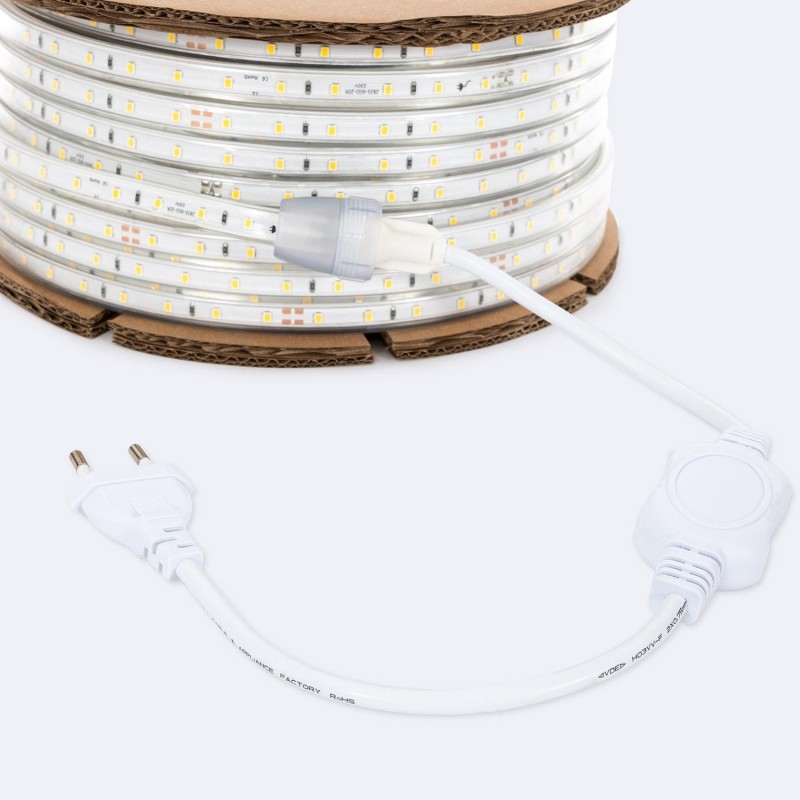 La bobine de bande LED dimmable 220V SMD2835 500 lm / m, 12 mm de large et 50 m de long, avec indice de protection IP65, se connecte directement au secteur, sans nécessiter d'alimentation supplémentaire. Sa flexibilité lui permet de s'adapter à presque toutes les surfaces.
