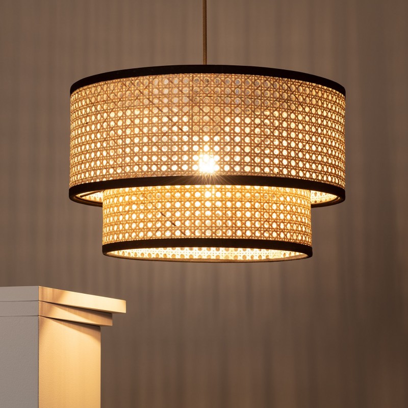 La suspension en rotin Huela Doppio se distingue par ses finitions de haute qualité et son design polyvalent, idéal pour les environnements de style naturel, méditerranéen ou boho-chic.