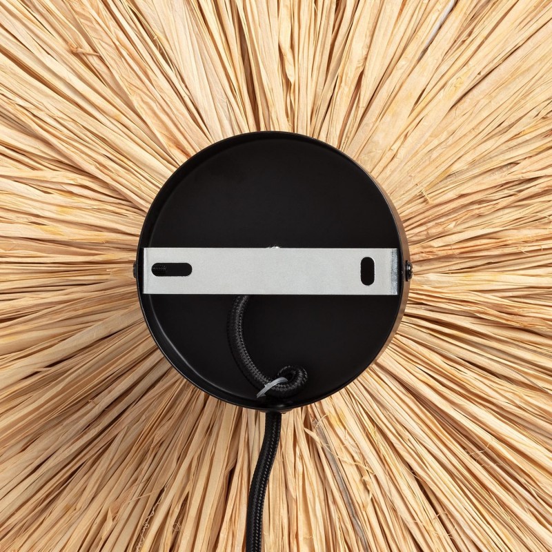 Cette applique est en raphia, une fibre naturelle connue pour sa résistance et sa flexibilité, qui permet de travailler les fibres pour obtenir des tissus et des finitions de haute qualité comme ceux présents dans ce produit.