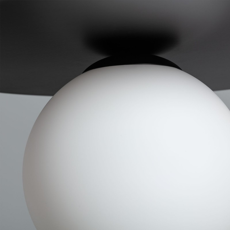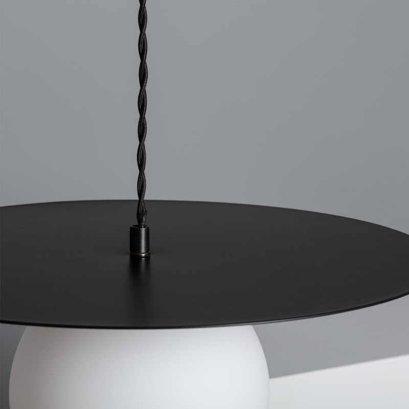 Cette lampe a un corps de support de lampe en métal finition noire et un abat-jour en verre à effet opale. Il est idéal pour une variété d'espaces intérieurs, y compris les salons, les salles à manger, les chambres, les restaurants et les locaux commerciaux.