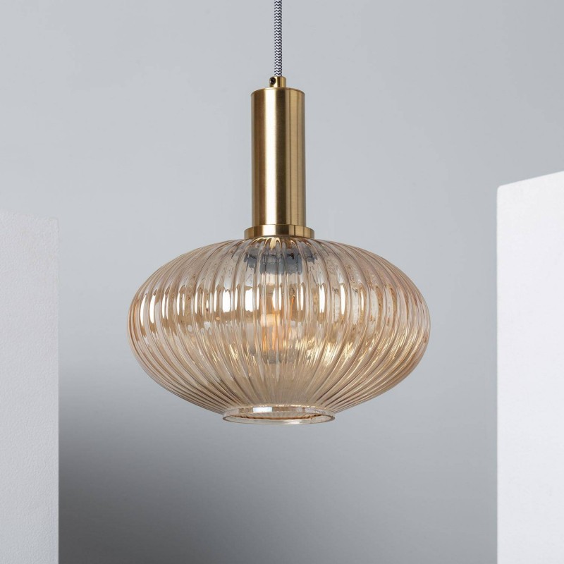 Réalisée en métal et verre, la suspension cristal Basile se distingue par son abat-jour sphérique aux reliefs subtils qui évoquent le style des lampes classiques des années 20.