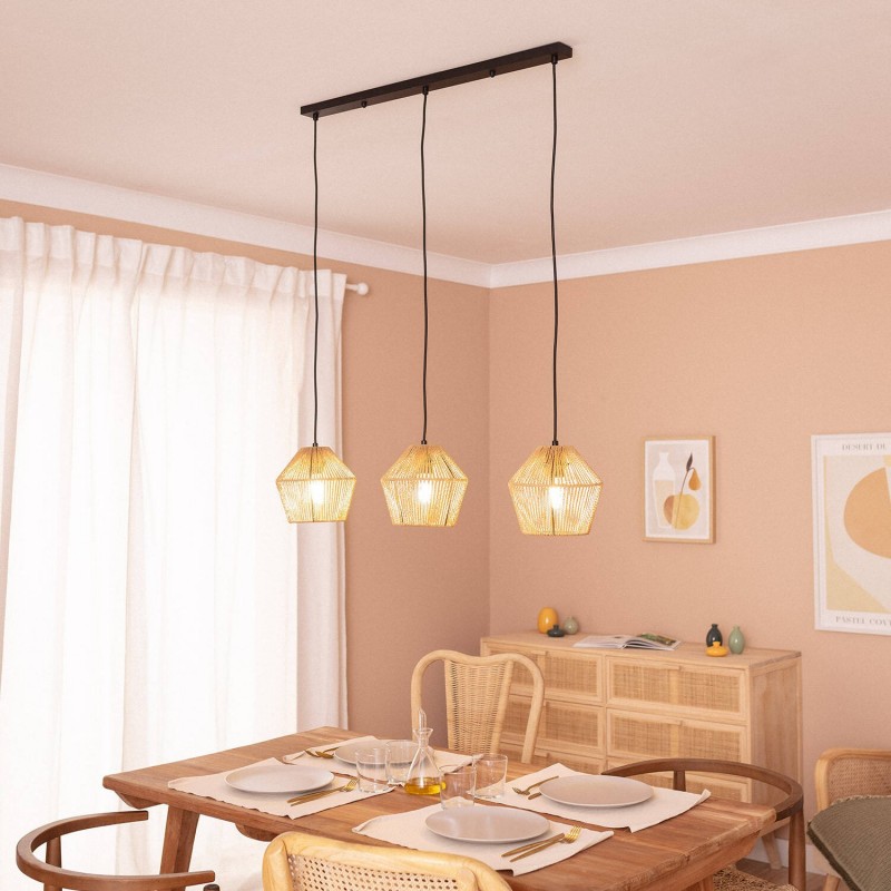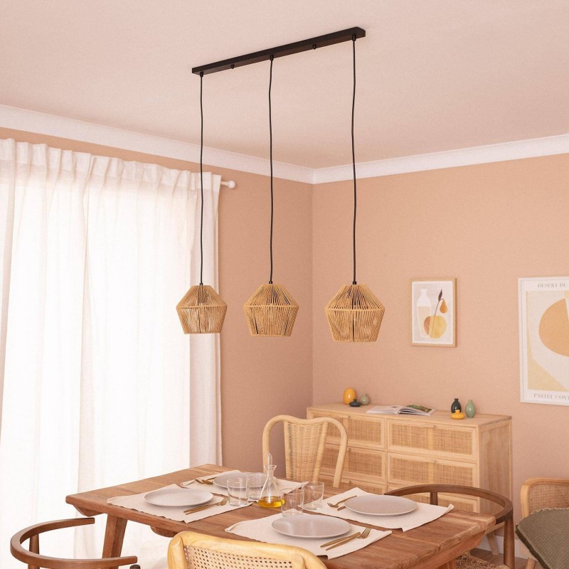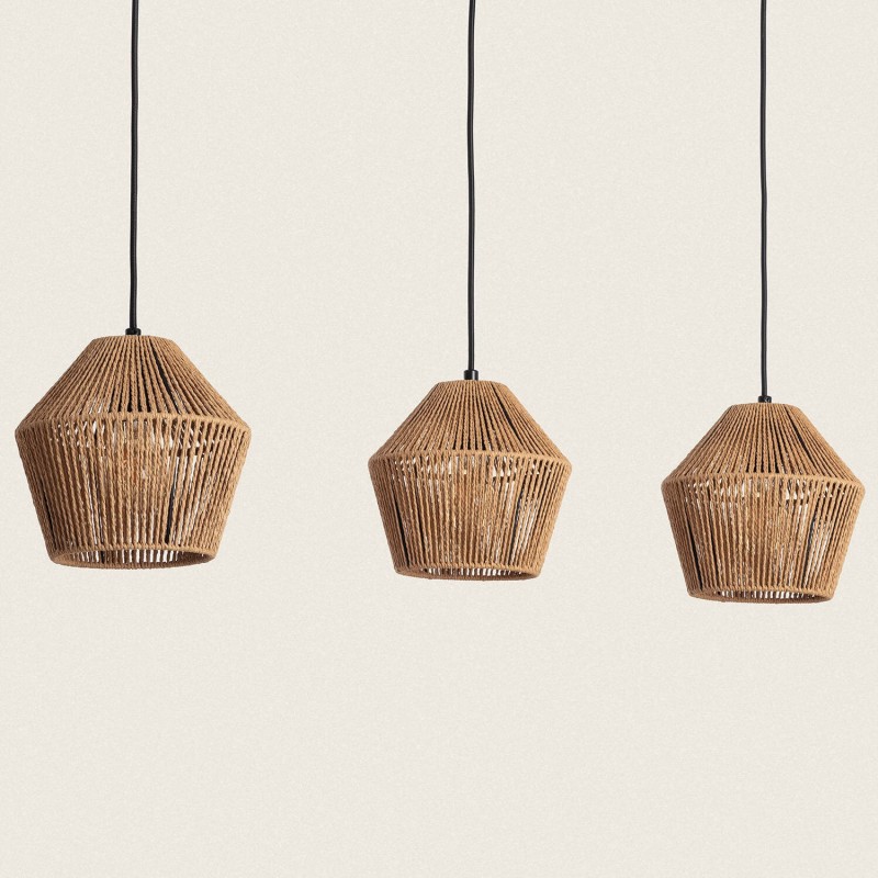 La suspension en papier tressé Kirito à 3 spots allie un design unique et naturel à des finitions de haute qualité. Ce type de lampe design apporte une touche chaleureuse qui ajoute de la personnalité à n'importe quel espace, le rendant spécial.