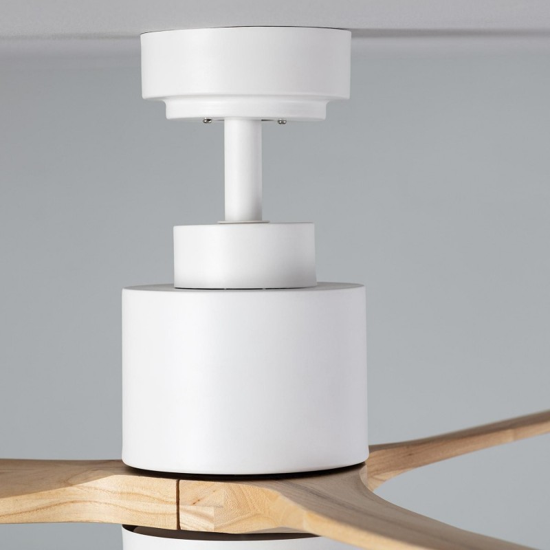 Le ventilateur de plafond silencieux Mersin blanc en bois de 132 cm, équipé d'un moteur à courant continu de 40 W, offre la possibilité d'ajouter une source de lumière LED CCT de 15 W. Son design classique et élégant en fait un élément fonctionnel et décoratif pour n'importe quel espace.