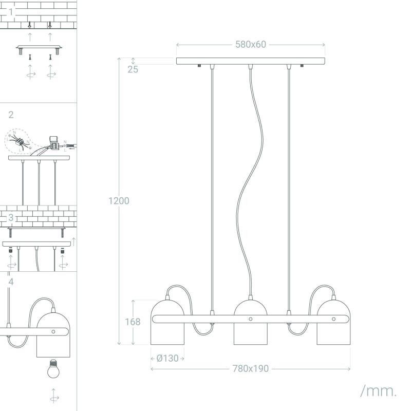 Nécessite 3 ampoules E27 (non incluses).